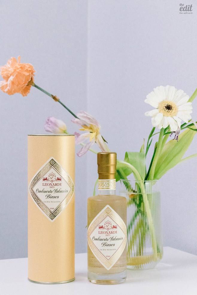 전통 방식으로 만든 발사믹은 포도즙을 끓여서 나무로 만든 통에 5년 이상을 숙성시킨다. 숙성시키는 동안 포도즙의 양이 줄어들게 되는데, 체리, 오크, 밤나무, 목향나무로 만든 다양한 통에 옮겨 담아 향이 잘 섞이도록 한다. 이 과정에서 여러 향이 섞이고, 적당한 단맛과 부드러운 신맛이 나는 발사믹이 완성된다. 지금 소개하는 발사믹은 백포도주로 만들어 밝은색을 띤 화이트 발사믹이다. 세 번이나 재구매했을 정도로 채소나 향이 강하지 않은 흰 살 생선에 활용하기 좋다.