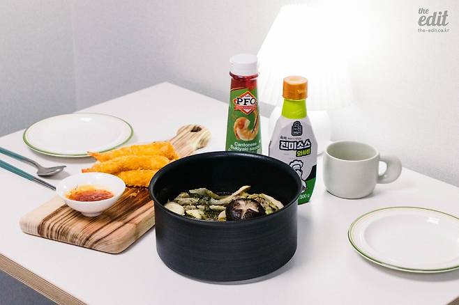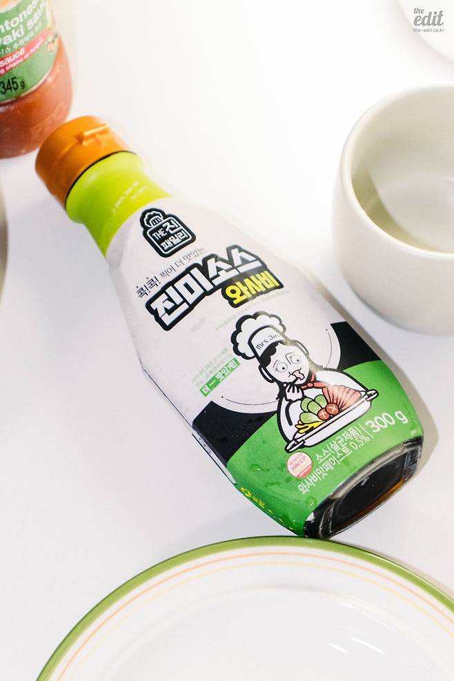 자취를 시작하면서 호기롭게 팔뚝 크기의 간장을 샀다. 이사를 한 지 두 달이 넘었는데, 새것과 다름없는 간장이 부엌 안쪽에 자리 잡고 있다. 반찬을 만들어 먹지 않아서 계란간장밥을 먹는 날 빼곤 사용할 일이 드물다. 대신에 진미식품에서 출시한 ‘소스 와사비’를 애용 중이다. 군만두를 찍어 먹을 때, 밀푀유나베 밀키트를 먹을 때, 기름진 요리에 곁들어 먹기 간편하다.