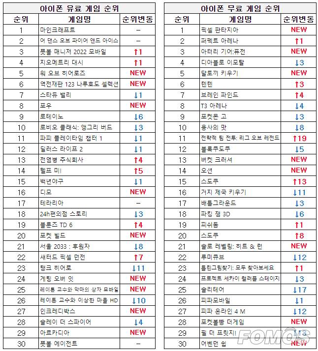 유료 게임 순위에서는 '마인크래프트'가 1위를 차지한 가운데 캡콤의 법정 어드벤처 게임 '역전재판 123 나루호도 셀렉션'이 출시와 함께 6위를 기록했다.