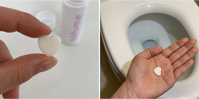 발포 비타민처럼 생긴 이건 뭘까 싶으시죠? 바로 응가 냄새 차단하고 욕실에 은은한 향만 퍼지게 하는 제품이에요