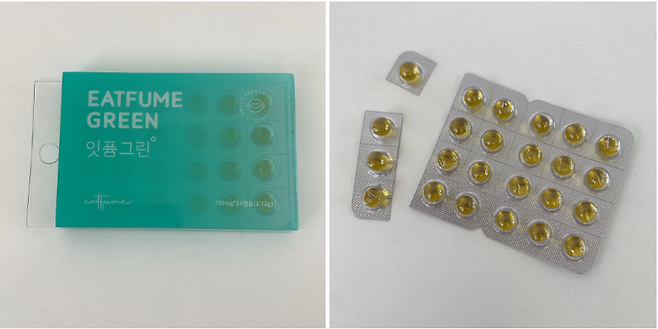 입에서 터트리면 오일이 흘러나와서 쓴맛이 서서히 느껴지다가 속까지 가글한 느낌으로 좀 느낌이 썩 좋지 않아요