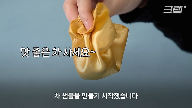 이렇게 비단 주머니에 한 잔 분량만큼의 차를 담아 차 샘플을 만들었습니다.