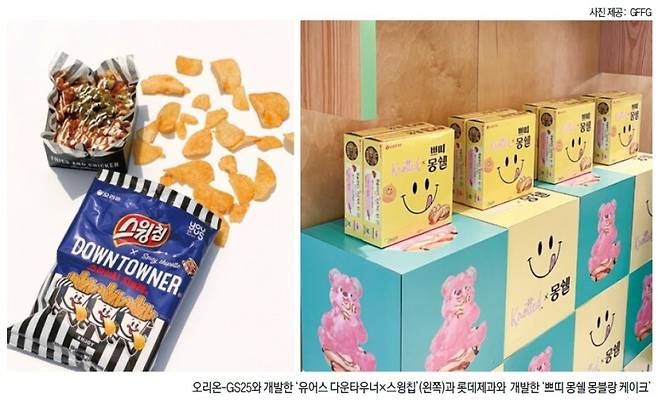 이런 고민 끝에 롯데제과와 진행한 '쁘띠 몽쉘 몽블랑 케이크', 오리온-GS25와 진행한 '유어스 다운타우터X스윙칩' 등이 탄생했다. 두 제품은 편의점, 마트 과자 판매 순위에서 상위권을 유지하고 있으며 전국에 있는 GFFG 팬들의 사랑을 받고 있다. GFFG의 맛을 담고 있는 전에 없던 제품으로 기존 고객들에게도 새롭게 다가간 것이다.