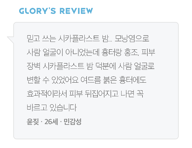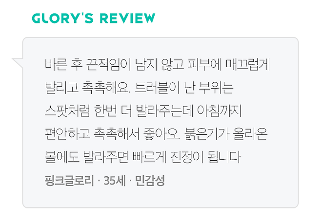 많은 글로리들이 진정크림 하면 많이 떠올릴 라로슈포제! 글로우픽에도 리뷰가 2,000건 이상 등록될 정도로 스테디셀러인 제품인데요. 외부 자극에 의한 피부 가려움, 건조함, 거칠어짐 등 데일리 손상을 케어하는 제품으로 특히 민감피부들에게 인기가 많다고 해요. 여드름성 피부 사용적합은 물론, 피부 장볍 강화, 붉어짐 완화 등 테스트도 완료할 정도로 안심하고 사용하기 좋은 것이 특징! 고농축 시카 마데카소사이드 진정크림 사용하고 싶다면 라로슈포제를 기억해주세요!