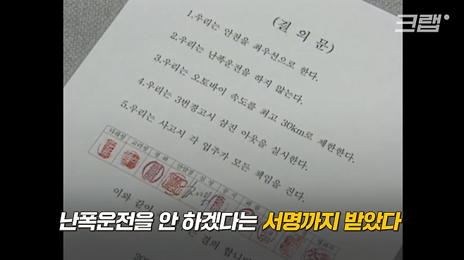 어떤 배달원들은 난폭운전을 하지 않겠다는 서명을 하기도