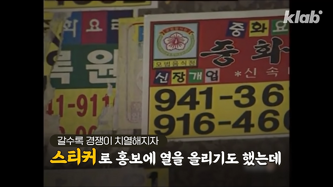 중국집들은 스티커로 홍보를 하며 치열한 경쟁을 하기도 했죠.