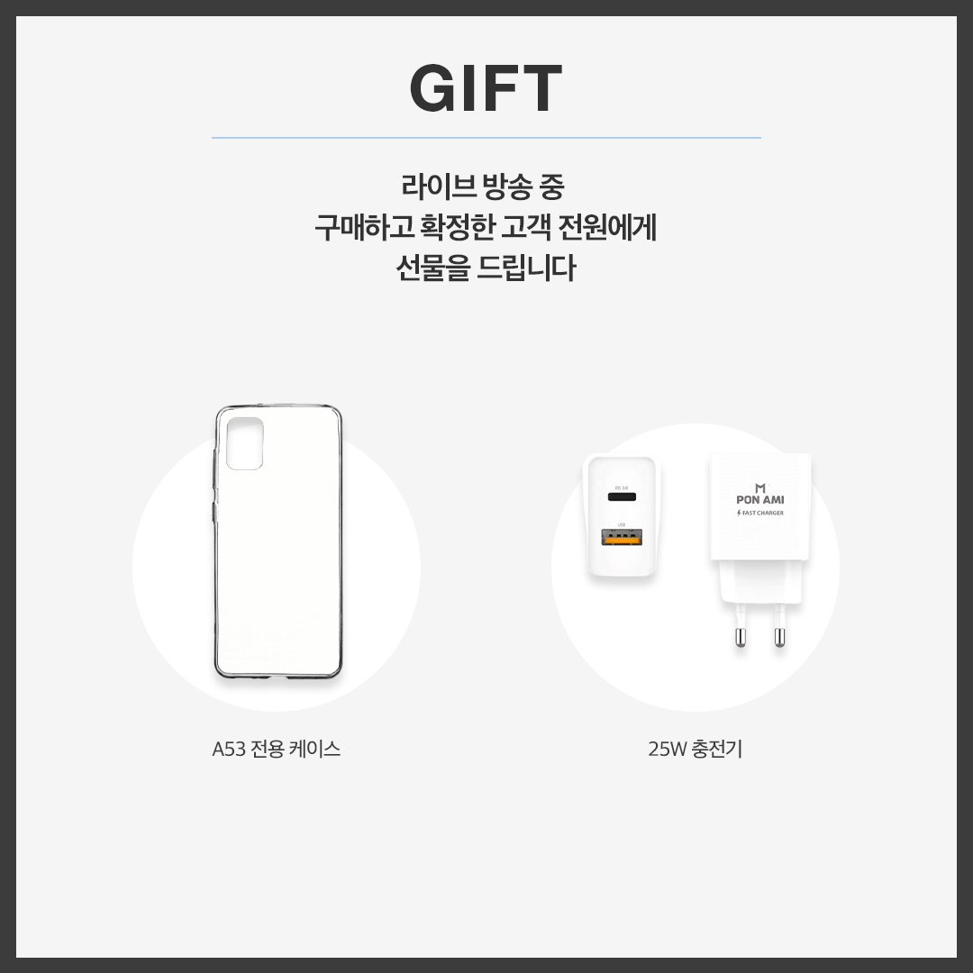✔ 라이브 참여 구매 확정한 고객 전원, 갤럭시 A53 전용 케이스 및 25W 충전기 증정