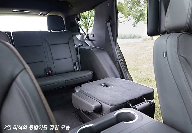 그렇지만 공간에서의 장점은 상당하다. 2열과 3열을 모두 접으면 넓은 공간에 1열 좌석 등받이에 설치된 두 대의 모니터는 그야말로 캠핑에서 야외 극장이나 마찬가지의 역할을 할 것으로 기대되는 부분이다. 결국 가족용 SUV의 장점이 최대한 발휘되는 부분이다.