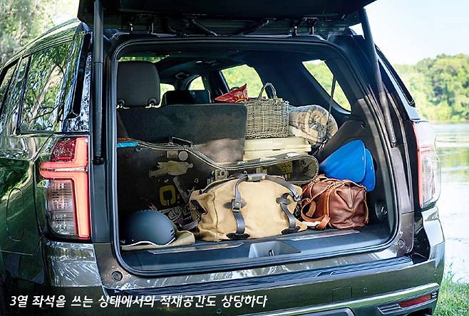 한편으로 3열좌석까지 모두 탑승을 한다고 해도 뒤 트렁크 공간의 크기도 매우 크게 확보돼 있음을 볼 수 있다. 캠핑을 즐기는 분들이 여러가지 짐을 SUV에 싣게 될 때 자투리 공간도 잘 활용해 짐을 싣는 걸 테트리스 블록 쌓기 게임에 비유해서 말하기도 하는데, 타호의 기본 적재 공간은 그런 테트리스 방법이 아니더라도 상당한 짐을 실을 수 있는 크기로 보인다.