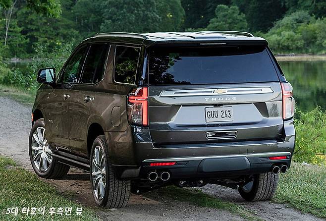한국GM이 미국에서 들여와 시판하기 시작한 대형 SUV 타호(Tahoe)를 살펴보자. 타호는 미국에서 상당히 대중적으로 쓰이는 대형 SUV이고 같은 브랜드의 서버번(Sururban)과 많은 부분이 같다. 물론 서버번은 타호보다 리어 오버행이 긴, 말하자면 픽업 트럭에 지붕을 올린 형식에 가까운 차량이고, 타호는 그보다는 짧은 차체를 가지고 있다. 비록 여기에서 짧다고 썼지만, 결코 작은 차는 아니다. 오늘 살펴보는 모델은 2022년형으로 등장한 5세대 풀 모델 체인지 차량이다.