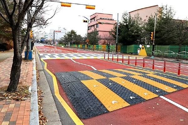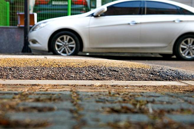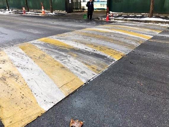 방지턱의 설치 규정은 도로 폭이 6m 이상인 왕복 2~4차선 도로와 도로 폭이 6m 미만인 왕복 2차선 도로에 노란색으로 설치되어 눈에도 잘 띄는데요. 속도 제한(시속 30km 이하) 뿐 아니라 자동차의 통행량 감소 그리고 보행자의 공간 확보, 도로 경관 개선, 불법 주차 예방 등의 효과도 누리고 있습니다.