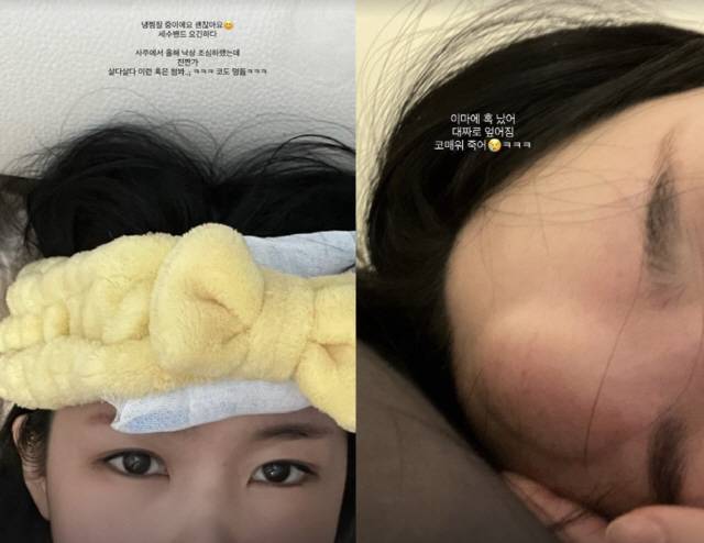 24일 웨이는 자신의 인스타그램에 "이마에 혹 났어. 대자로 엎어짐. 코 매워 죽어", "냉찜질 중이에요. 괜찮아요. 세수밴드 요긴하다. 사주에서 올해 낙상 조심하랬는데 진짠가. 살다 살다 이런 혹은 처음 봐. 코도 멍듦"이라는 설명과 함께 두 장의 사진을 게재했다.