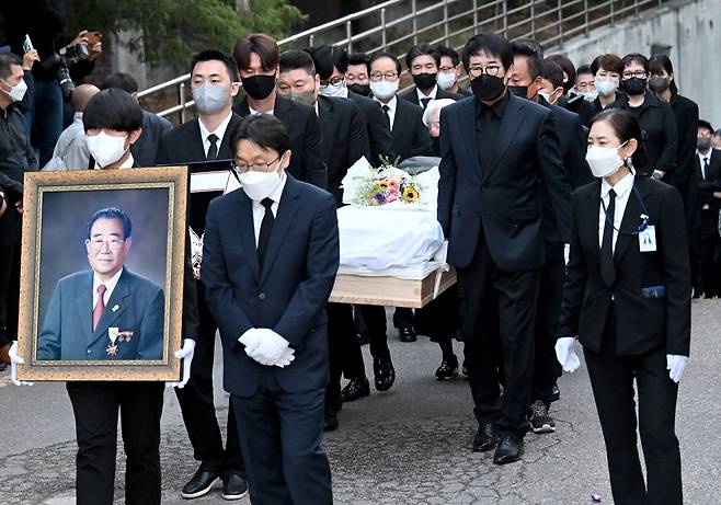10일 오전 4시 30분 서울 종로구 서울대학교병원 장례식장에서 송해 씨의 영결식 및 발인식이 엄수됐다. 유족과 연예계 동료들이 참석해 고인의 마지막 길을 함께 했다.