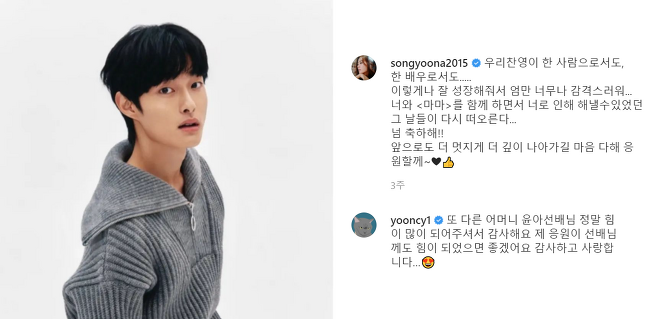 이에 윤찬영은 “또 다른 어머니 윤아선배님 정말 힘이 많이 되어주셔서 감사해요”라며 감사하고 사랑한다는 댓글로 애정을 표현했습니다.