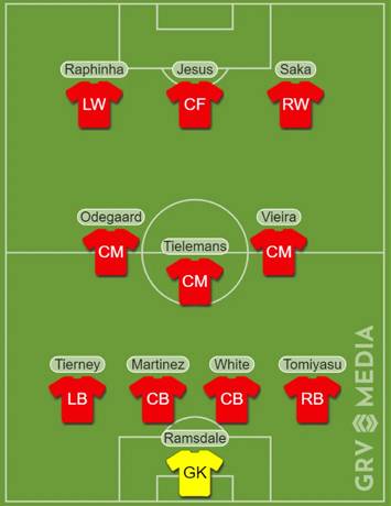 TBR은 아스날의 2022-23시즌 베스트11에 대해 제주스가 하피냐와 사카와 함께 스리톱을 구축할 것으로 점쳤다. 또한 중원은 외데가르드, 틸레만스, 비에이라가 구성하고 포백은 티어니, 마르티네즈, 화이트, 토미야스가 맡을 것으로 예상했다. 골키퍼에는 지난시즌과 비교해 변함없이 램스데일이 주축 선수로 활약할 것으로 점쳤다.
