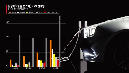◇현대차·기아 전기차 5위지만… 상위권과 격차= 국내 완성차 업체 중 글로벌 시장에서 전기차로 성과를 거두고 있는 곳은 현대차·기아다. 한국자동차연구원에 따르면 지난해 현대차·기아의 전기차 판매량은 24만500대로 전년 대비 65% 증가했다. 1위 테슬라(92만1642대), 2위 상해기차(61만1023대), 3위 폭스바겐(43만6669대), 4위 BYD(33만5257대)에 이어 5위다.