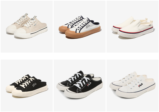 많은 제품들을 선보이고 있는 휠라의 뮬 스니커즈는