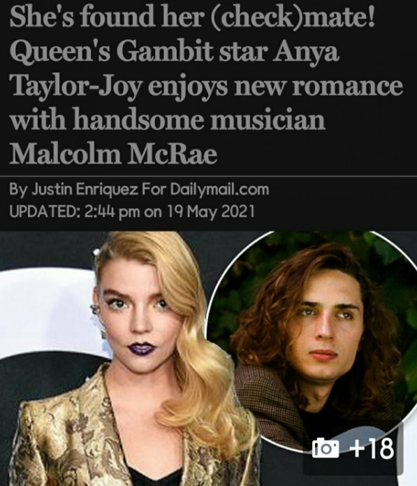 우리나라에 넷플릭스 시리즈 '퀸스 캠빗'으로 유명한 1996년 생 '안야 테일러 조이'가 작년 5월 호텔 발코니에서 찍힌 키스 사진으로 공식 열애를 인정 했는데요.