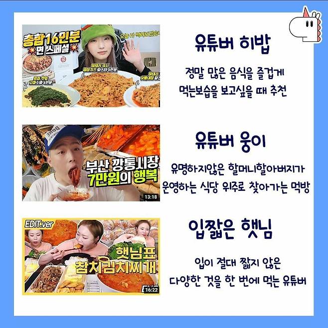 혼자 밥먹을 때 보기 좋은 꿀잼 유튜브채널 추천💗