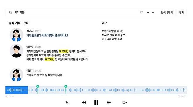 한익상: 음성 녹음을 음성인식 기능을 활용해 텍스트로 출력하고 원하는 데를 클릭하면 다시 들을 수 있게 하는 기능으로 시작했다. 그러다 화자인식 기능도 내부적으로 갖고 있었기 때문에 화자를 정확히 구분하고 그 다음 음성을 텍스트로 바꿔주는 기능을 추가했다. 사실 이러한 기능을 원하는 이들은 그동안 많았는데, 실제 서비스로 만들기까지가 오래걸렸다.