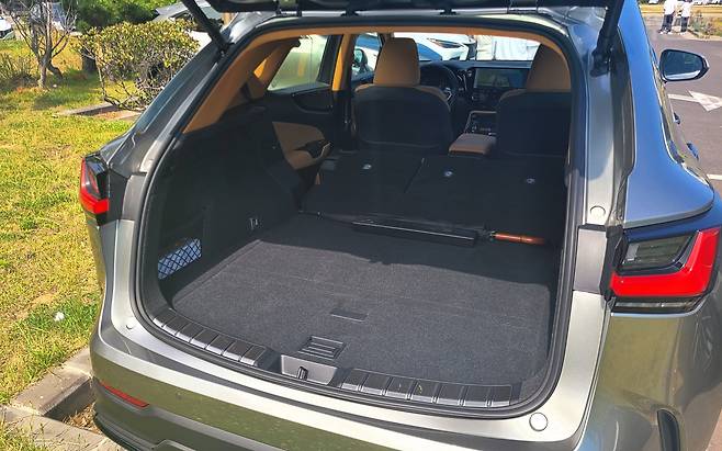 트렁크 용량은 520L. 아우디 Q5와 같고, GV70(542L)와 GLC(550L), X3(550L)보다는 조금 작다. 양쪽 벽에는 금속 고리 2개와 최대 4㎏을 견디는 플라스틱 고리를 달았다. 버튼을 통해 4:6으로 나눈 2열 시트를 전동식으로 접거나 올릴 수도 있다(폴딩 시 1,411L). 바닥 패널 아래 공간도 꽤 여유롭다. 하이브리드 배터리를 뒷좌석 아래에 넣은 덕분이다.