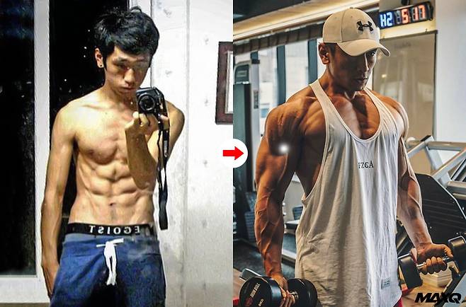 이후 꾸준하게 운동하면서 증량을 시도한 그는 근육량을 14kg이나 늘렸어요. 운동과 함께 끼니마다 탄수화물과 단백질, 아몬드 브리즈를 섭취하면서 역삼각형 몸매를 완성해갔죠. 피트니스 대회 수상을 목표로 삼은 그는 운동과 식단관리에 더욱 철저히 지켜 나갔어요. 그러나 대회 경험이 적은 탓에 타이트하게 대회를 준비하게 되었고, 최상의 컨디션을 만들지 못해 고배를 여러 번 마시게 되었어요.