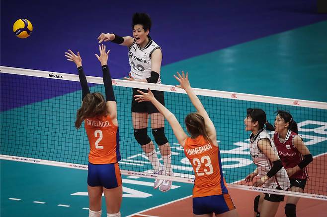 한국은 1세트부터 네덜란드에 끌려갔다. 범실만 9개를 쏟아내면서 초반 흐름을 상대에 넘겨줄 수밖에 없었다. 네덜란드의 높이에 고전하며 공격 성공으로 얻은 점수는 8점에 그쳤다.