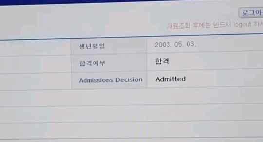 해당 영상 속 정지웅은 노트북 앞에 앉아 서울대학교 정시 합격자 발표 사이트를 들여다보고 있었다.