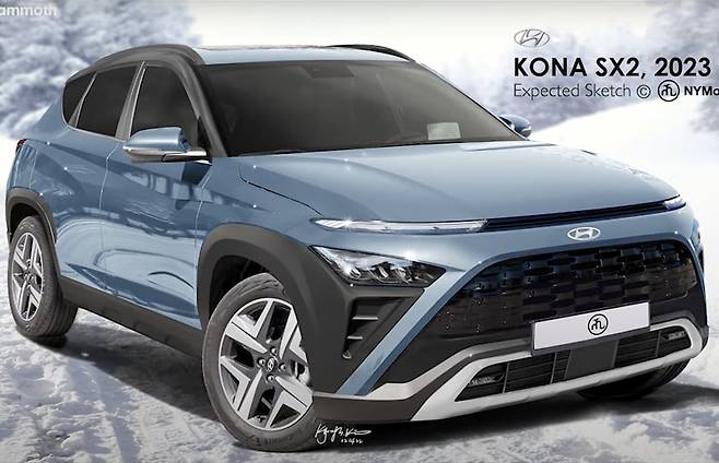 현지시간으로 22일 카버즈 등 외신은 신형 코나는 올해 초 혹한기 테스트 중 처음으로 프로토타입이 포착됐다고 전하며 그래픽 디자이너 'NYMammoth'가 공개한 예상도를 통해 신차 디자인을 짐작할 수 있다고 보도했다.