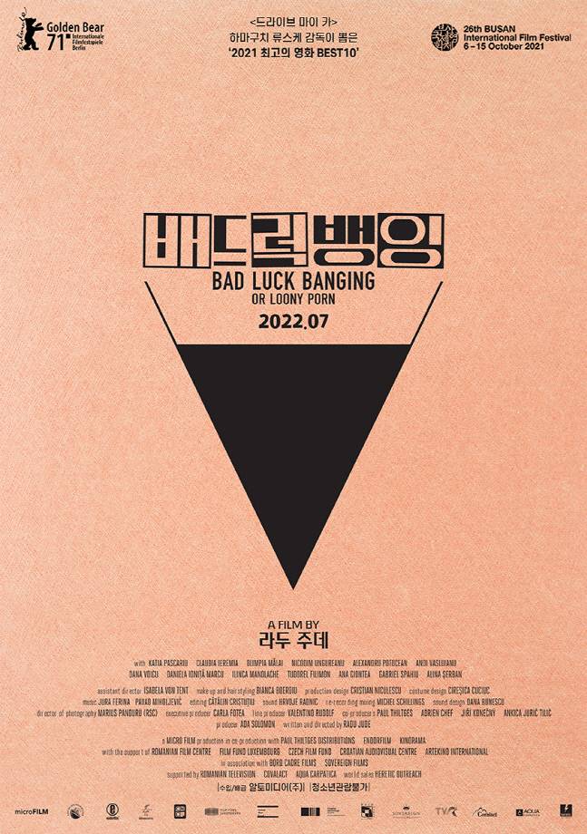 한편 ‘배드 럭 뱅잉’은 ‘아페림!’(2015)으로 제65회 베를린국제영화제 은곰상(감독상)을 거머쥐며 거장의 반열에 오른 루마니아 대표 시네아스트 라두 주데의 마스터피스다. 여기에, 제69회 칸영화제 경쟁부문 인기작 ‘토니 에드만’의 총괄 프로듀서 아다 솔로몬, 그리고 제74회 칸영화제 심사위원상 수상작 ‘메모리아’의 공동 프로듀서 안드레아스 로알드와 자말 자이날 제이드가 ‘배드 럭 뱅잉’ 제작에 참여해 더욱더 화제를 불러일으킨 바 있다. 마지막으로, ‘배드 럭 뱅잉’은 뉴욕타임즈(The New York Times), 리틀 화이트 라이즈(Little White Lies), 인디와이어 크리틱스 폴(IndieWire Critics‘ Poll)을 비롯, 여러 영화 전문 매체들이 선정한 ’2021 최고의 영화‘ 리스트에 당당히 오르며 화제성을 증명했다.