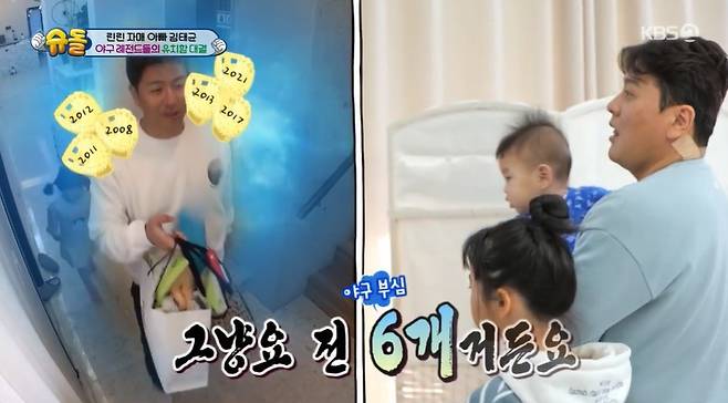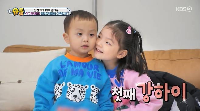 6일 방송된 KBS 2TV ‘슈돌’에선 김태균, 강민호 가족의 만남이 펼쳐졌다.