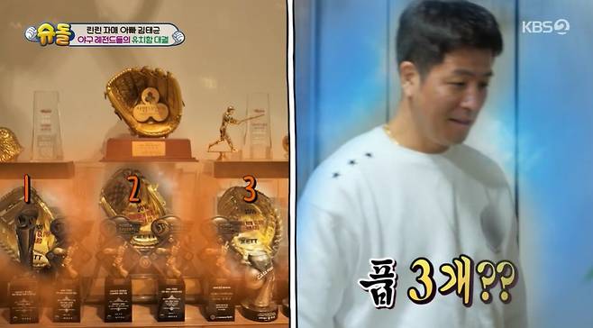 김태균 대 강민호의 자존심 대결도 펼쳐졌다. 이날 김태균의 집을 둘러보던 강민호는 벽 한 면을 가득 메운 트로피를 보곤 강민호는 “너무 자랑하는 거 아닌가?”라며 질투를 표했다.