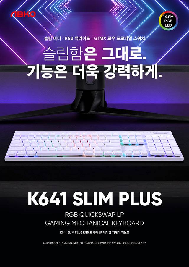 삶의 새로운 패러다임, "뉴 라이프 플랫폼"을 만들어가는 주식회사 앱코에서 ABKO K641 SLIM PLUS RGB 게이밍 기계식 키보드(이하 K641 SLIM PLUS)의 출시 소식을 전했다.