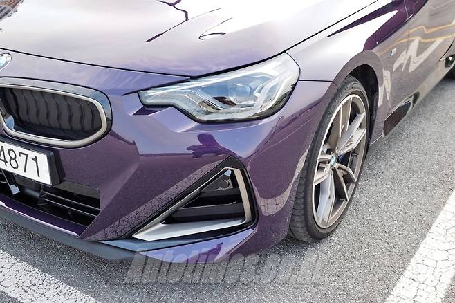 옆은 소형 쿠페가 보여줄 수 있는 당찬 모습이 인상적이다. 짧은 길이와 균형 잡힌 휠베이스, 극단적인 오버행이 절묘한 조화를 이루며 낮은 자세가 달리기에 최적화 돼있다. 에어로 다이내믹을 고려해 도어 손잡이는 차체와 매끈하게 맞췄고 사이드 스커트는 날카롭게 다듬었다. 듬직한 19인치 휠과 파란색 캘리퍼, M카를 상징하는 끊어진 사이드 미러도 멋을 더한다.