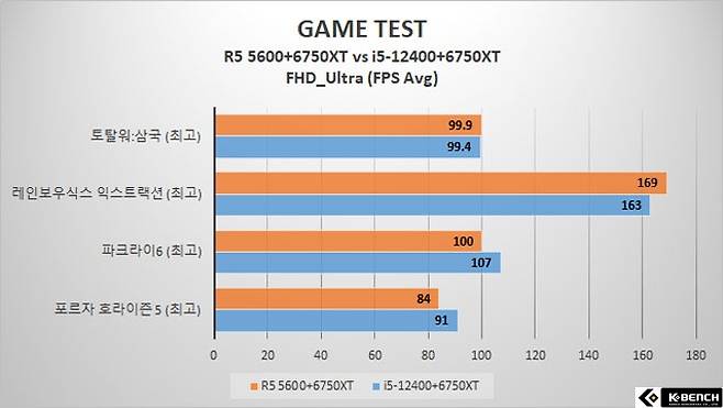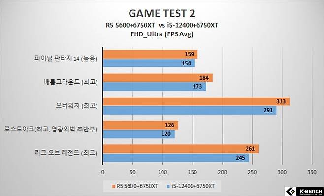 사실 전체적으로 60프레임 이상을 제공하는 결과이기도 하고, 온라인 게임의 경우에는 대부분 높은 결과를 제공하는 모습이기에, 두 시스템다 게임을 플레이하는데에는 전혀 지장이 없을 것으로 보이지만, 조금이라도 더 높은 프레임으로 PC를 구성하고 싶다면 R5 5600 기반의 시스템에 6750XT를 구성하는 것이 더 좋아보인다.