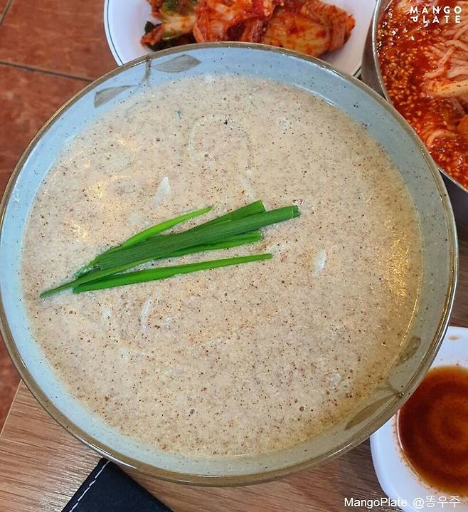 또 다른 추천 메뉴인 들깨 칼국수는 들깨의 거친 고소함을 사랑하는 분들이라면 빠질 수밖에 없는데요.탱글탱글 투박한 칼국수 면발에 들깨의 풍미까지 더해져 아주 묵직한 느낌을 지녔죠.
