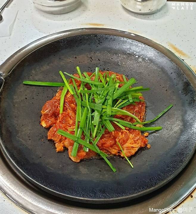 돼지주물럭은 위에 올라간 부추의 향긋함이 고기의 고소함과의 조합이 아주 훌륭한데요. 양까지 아주 푸짐하죠. 짜거나 맵지도 않고 깔끔하고 슴슴한 간은 건강하면서도 아주 맛있어 흔히 찾아볼 수 없는 스타일입니다. 고기는 잡내가 나지 않는 담백한 맛으로 아주 부드럽고 촉촉하죠.