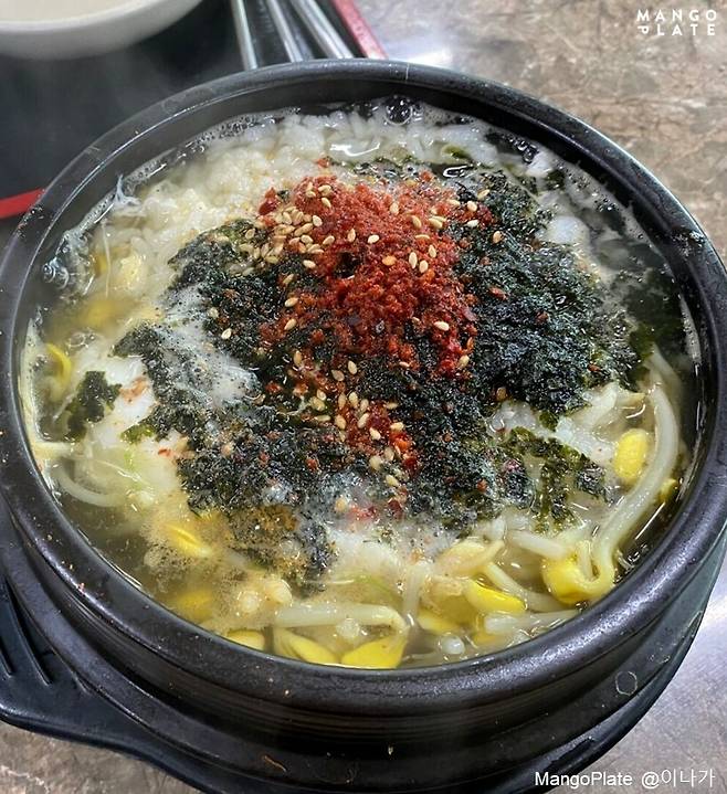 독특한 느낌의 콩나물 해장국을 맛볼 수 있는 <송도콩나물해장국>입니다. 양념장과 고추의 칼칼함과 김가루의 고소함, 콩나물의 깔끔한 개운함까지 모두 지닌 훌륭한 균형을 자랑하는 녀석인데요.