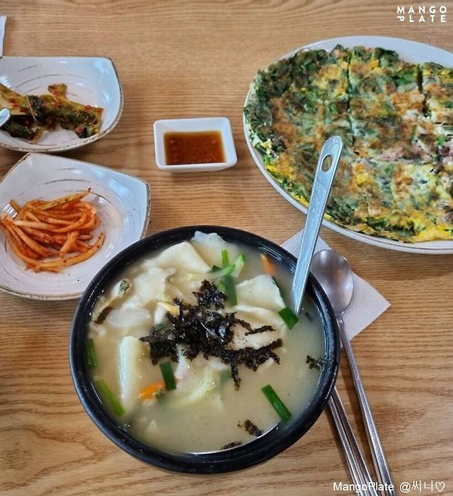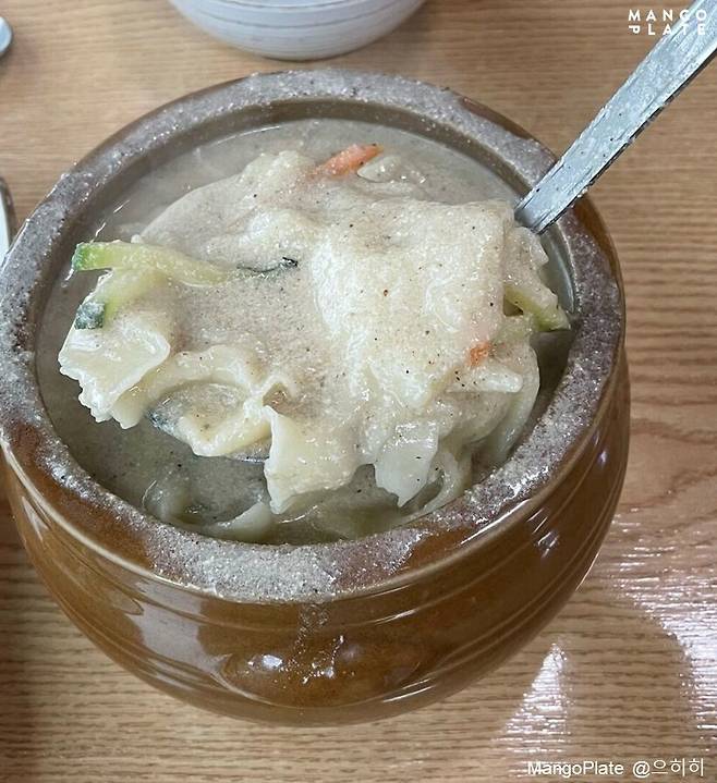 또 다른 추천 메뉴로는 고소함이 폭발하는 들깨 수제비입니다. 맑은 국물에 들깨가 추가되어 더욱 고소한 맛이 부각되는 느낌인데요. 진하고 걸죽해 묵직한 식사를 원하는 분들에게는 제격이죠. 하지만 전혀 부담스러움이 없기 때문에 든든하면서도 속이 부대끼는 일은 절대 없습니다.