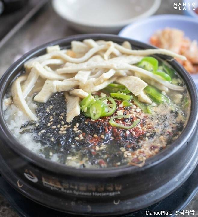 특이한 점은 반찬으로 나오는 어묵볶음을 추가해서 먹는 형식입니다. 이미 흠잡을 데 없는 밸런스를 자랑하는 콩나물 해장국에 어묵이 들어가는 순간 감칠맛이 더해져 탄탄한 완성도를 넘어 특별함까지 지니게 되죠.
