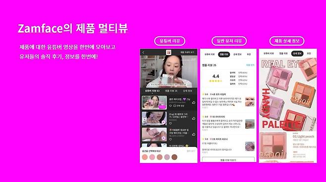 소위 ‘Z세대’라고 하는, 10대 중반부터 20대 초반이 많아요. 이분들은 텍스트로 된 리뷰는 잘 안 봐요. 관심 있는 화장품이 있으면 바로 유튜브에 검색하죠. 그런데 유튜브에 화장품 제품명을 검색해도, 실제로 그 화장품을 사용한 영상을 찾기 힘들거든요. 반면, 잼페이스에서 화장품을 검색하거나 선택하면, 그 화장품을 사용한 뷰티 유튜버들의 영상을 바로 볼 수 있어요.