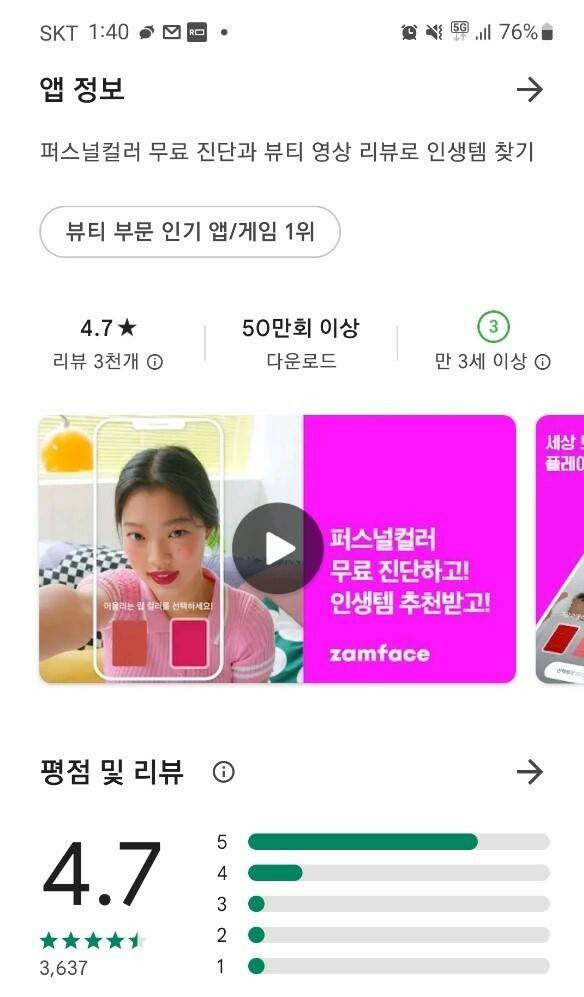 잼페이스는 뷰티 영상을 편리하게 시청할 수 있는 “타임점프”라는 AI기반의 서비스로 시작해서, MZ세대들이 뷰티 과련 정보를 공유하는 “잼피드”, 그리고 AI가 퍼스널 컬러(피부, 머리카락 등과 잘 어울리는 색상)를 진단해 주는 “퍼컬매칭”이라는 서비스까지 뷰티를 즐길 수 있는 다양한 기능을 탑재하고 있습니다.