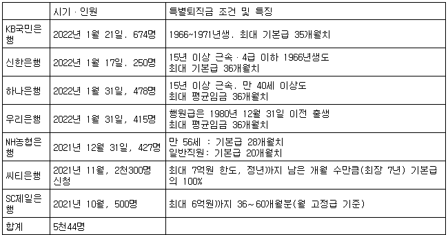 [표] 최근 시중은행 희망퇴직 현황