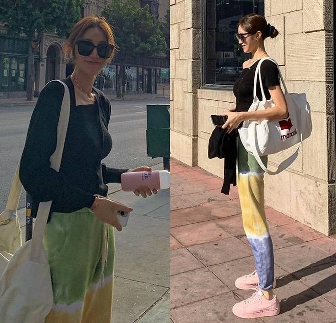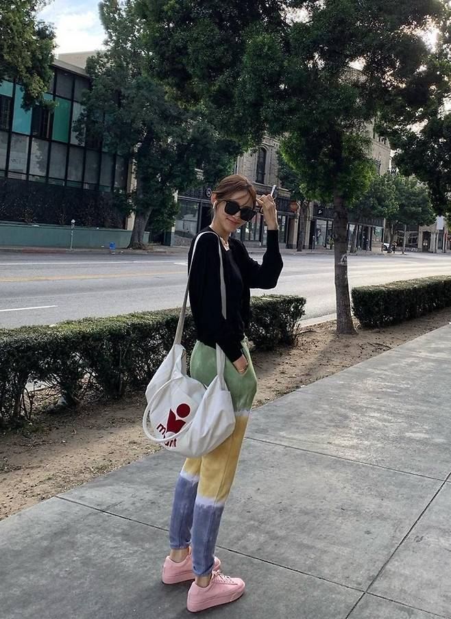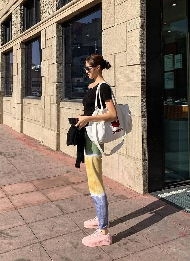 공개한 사진에서 서하얀은 컬러풀한 레깅스 팬츠와 블랙 티셔츠에 블랙 니트를 걸치고 핑크 스니커즈를 매치한 슬림한 산책룩으로 놀라운 비율을 자랑했다.