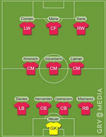 TBR은 2022-23시즌 바이에른 뮌헨의 베스트11을 예측하면서 공격진에는 마네가 측면 공격수 코망, 사네와 함께 스리톱을 구축할 것으로 점쳤다. 미드필더진에는 기존의 킴미히(독일)에 그라벤베르흐와 라이머가 합류할 것으로 예상했다. 포백은 데이비스(캐나다), 에르난데스(프랑스), 우파메카노(프랑스)와 함께 마즈라우이가 구성할 것으로 예측했다. 골키퍼는 변함없이 노이어(독일)가 주축 골키퍼로 활약할 것으로 언급했다.