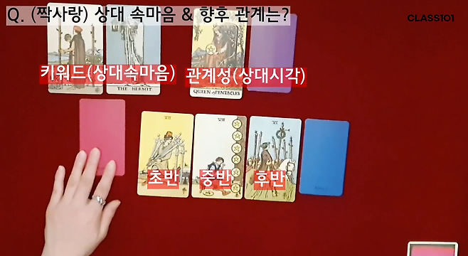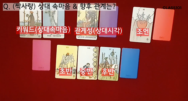연락을 기다리는 상황, 중요한 시험을 앞둔 상황, 전 애인과의 재회운 등 가슴이 답답할때 겪는 많은 상황별 고민에 따라 대처할 수 있도록 실전 타로 클래스를 준비했어요.