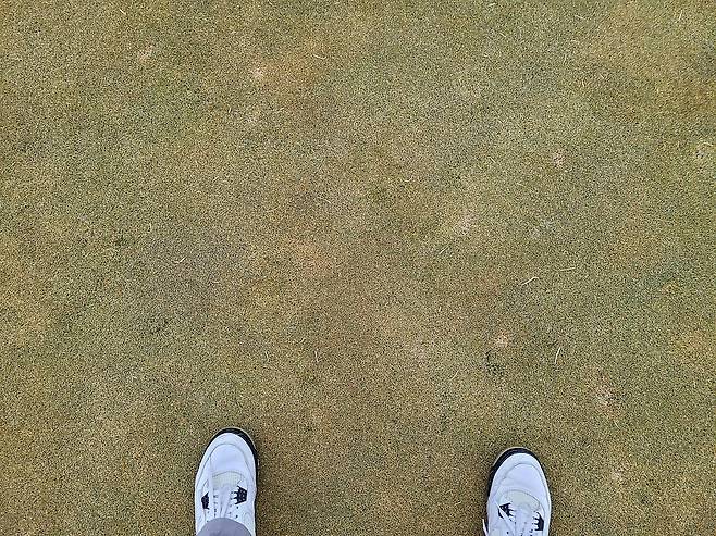 러프 상태도 겨울을 잘 견뎌낸듯합니다. 보통 숨이 죽어있으면 공이 잔디 위로 올라있는데 이날은 가끔 공이 가라앉아서 난이도 샷도 있었습니다.