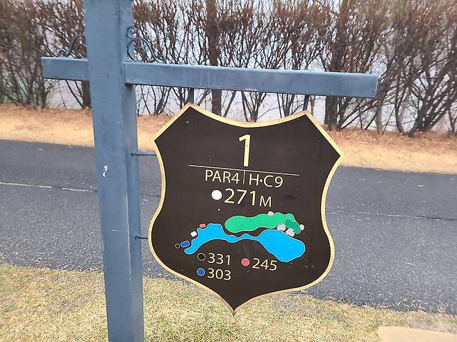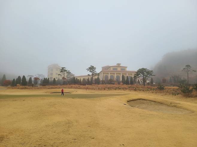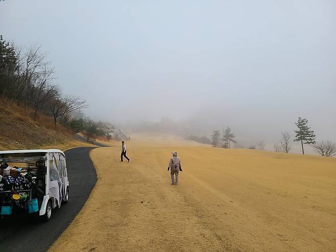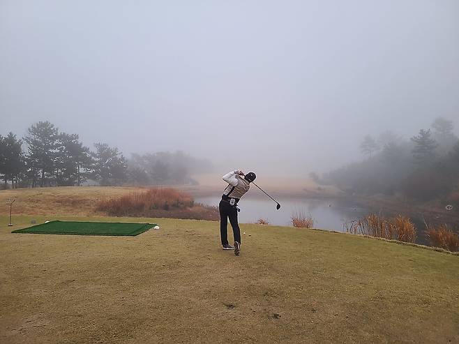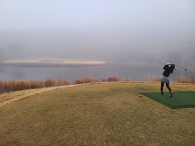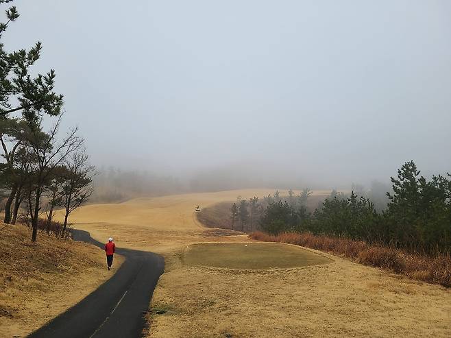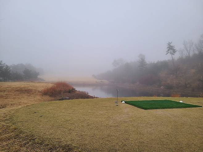 안개 덕분에 캐디님과 빨간 불빛이 지시한 방향으로 집중해서 쳐야 했습니다만, 코스가 서서히 보이기 시작하자 긴장해야 할 홀이 보이기 시작하더군요. 코스 자체도 OB와 해저드가 많은 편입니다.