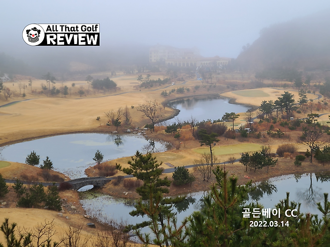 태안에 위치한 골든베이 골프&리조트는 총 27홀에 바다가 상당 부분 보인다는 코스입니다. 그러나 새벽부터 짙게 깔린 안개 때문에 분당에서 2시간 이상 달려갔음에도 불구, 바다는 전혀 안보였습니다(ㅠㅠ). 바람은 잔잔하고 시원한 날씨였지만, 거의 12번 홀 되어서야 안개가 걷혀 코스가 보이기 시작했네요. 덕분에 아름답다고 소문난 코스 경치를 제대로 보지 못했으나 대체로 재밌는 디자인 및 트랙이라고 생각합니다.