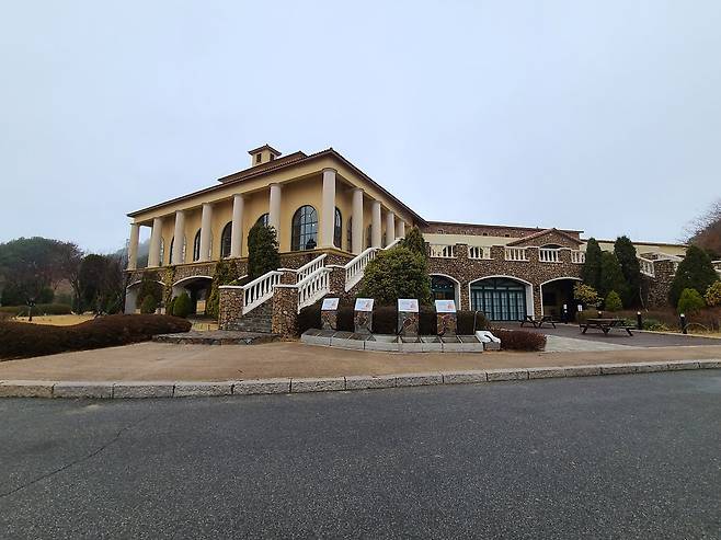 스타트 광장에서 바라보는 클럽하우스 뒷면.